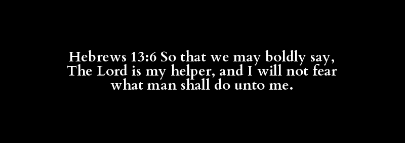 Hebrews 13:6 So that we may boldly say, The Lord is my helper, and I will not fear what man shall do unto me.