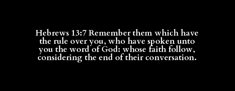 Hebrews 13:7 Remember them which have the rule over you, who have spoken unto you the word of God: whose faith follow, considering the end of their conversation.