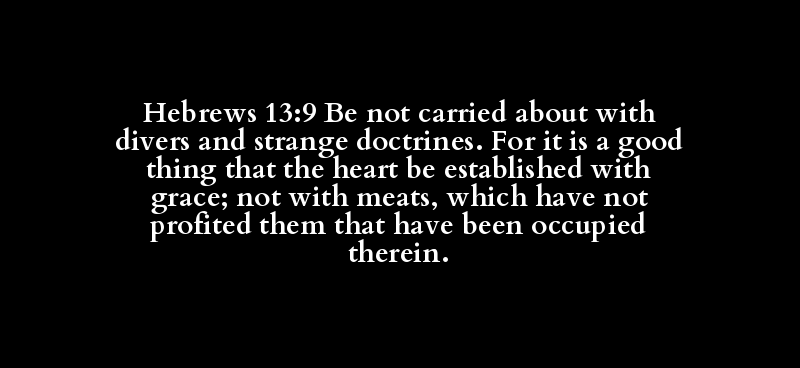 Hebrews 13:9 Be not carried about with divers and strange doctrines. For it is a good thing that the heart be established with grace; not with meats, which have not profited them that have been occupied therein.