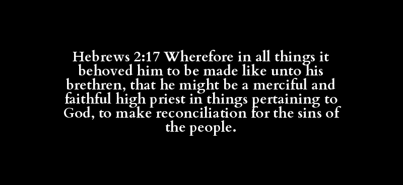 Hebrews 2:17 Wherefore in all things it behoved him to be made like unto his brethren, that he might be a merciful and faithful high priest in things pertaining to God, to make reconciliation for the sins of the people.
