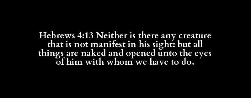 Hebrews 4:13 Neither is there any creature that is not manifest in his sight: but all things are naked and opened unto the eyes of him with whom we have to do.