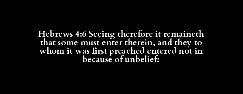 Hebrews 4:6 Seeing therefore it remaineth that some must enter therein, and they to whom it was first preached entered not in because of unbelief: