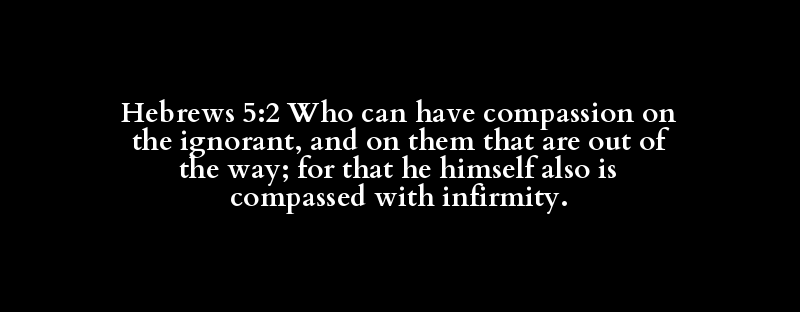 Hebrews 5:2 Who can have compassion on the ignorant, and on them that are out of the way; for that he himself also is compassed with infirmity.