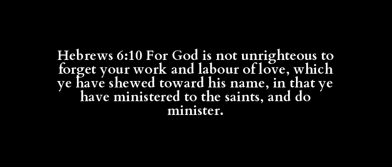 Hebrews 6:10 For God is not unrighteous to forget your work and labour of love, which ye have shewed toward his name, in that ye have ministered to the saints, and do minister.