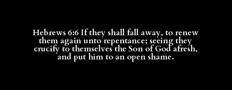 Hebrews 6:6 If they shall fall away, to renew them again unto repentance; seeing they crucify to themselves the Son of God afresh, and put him to an open shame.