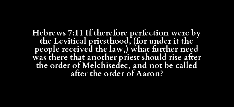 Hebrews 7:11 If therefore perfection were by the Levitical priesthood, (for under it the people received the law,) what further need was there that another priest should rise after the order of Melchisedec, and not be called after the order of Aaron?