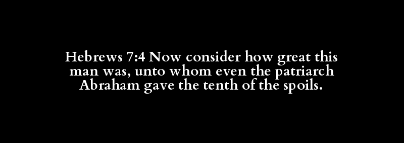 Hebrews 7:4 Now consider how great this man was, unto whom even the patriarch Abraham gave the tenth of the spoils.