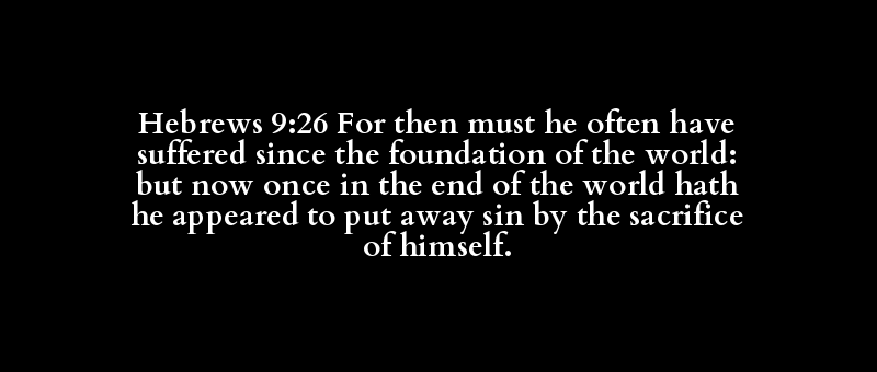 Hebrews 9:26 For then must he often have suffered since the foundation of the world: but now once in the end of the world hath he appeared to put away sin by the sacrifice of himself.