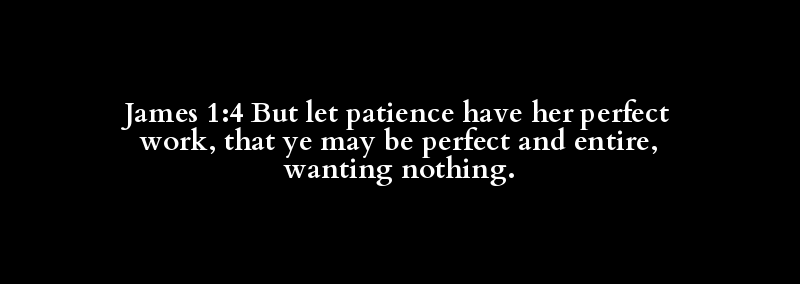 James 1:4 But let patience have her perfect work, that ye may be perfect and entire, wanting nothing.