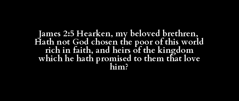 James 2:5 Hearken, my beloved brethren, Hath not God chosen the poor of this world rich in faith, and heirs of the kingdom which he hath promised to them that love him?