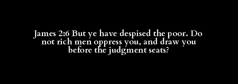 James 2:6 But ye have despised the poor. Do not rich men oppress you, and draw you before the judgment seats?