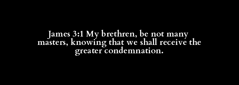 James 3:1 My brethren, be not many masters, knowing that we shall receive the greater condemnation.