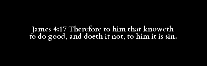 James 4:17 Therefore to him that knoweth to do good, and doeth it not, to him it is sin.