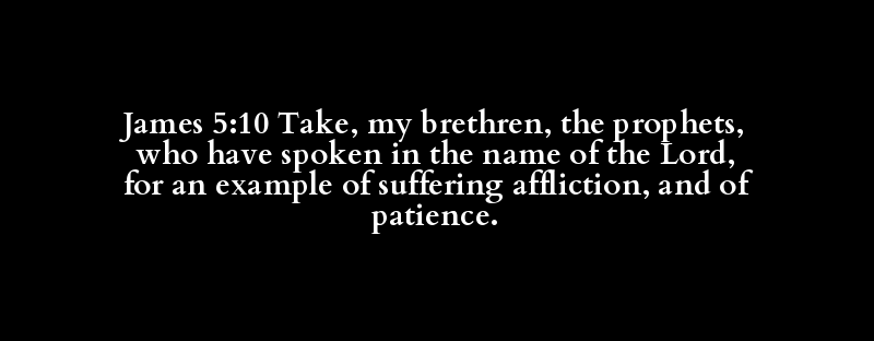 James 5:10 Take, my brethren, the prophets, who have spoken in the name of the Lord, for an example of suffering affliction, and of patience.