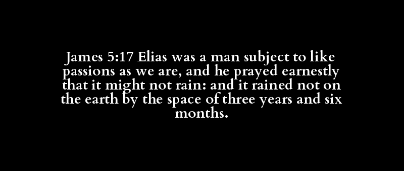 James 5:17 Elias was a man subject to like passions as we are, and he prayed earnestly that it might not rain: and it rained not on the earth by the space of three years and six months.