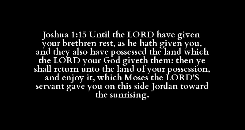 Joshua 1:15 Until the LORD have given your brethren rest, as he hath given you, and they also have possessed the land which the LORD your God giveth them: then ye shall return unto the land of your possession, and enjoy it, which Moses the LORD'S servant gave you on this side Jordan toward the sunrising.