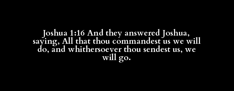Joshua 1:16 And they answered Joshua, saying, All that thou commandest us we will do, and whithersoever thou sendest us, we will go.