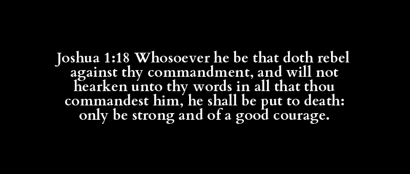 Joshua 1:18 Whosoever he be that doth rebel against thy commandment, and will not hearken unto thy words in all that thou commandest him, he shall be put to death: only be strong and of a good courage.