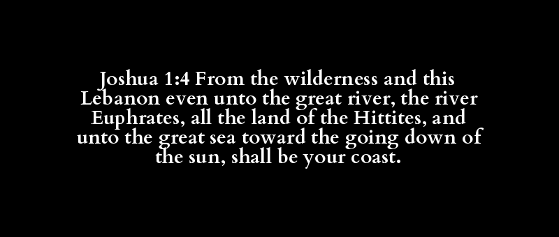 Joshua 1:4 From the wilderness and this Lebanon even unto the great river, the river Euphrates, all the land of the Hittites, and unto the great sea toward the going down of the sun, shall be your coast.