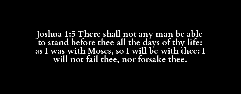 Joshua 1:5 There shall not any man be able to stand before thee all the days of thy life: as I was with Moses, so I will be with thee: I will not fail thee, nor forsake thee.