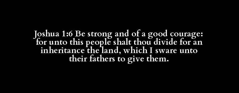 Joshua 1:6 Be strong and of a good courage: for unto this people shalt thou divide for an inheritance the land, which I sware unto their fathers to give them.