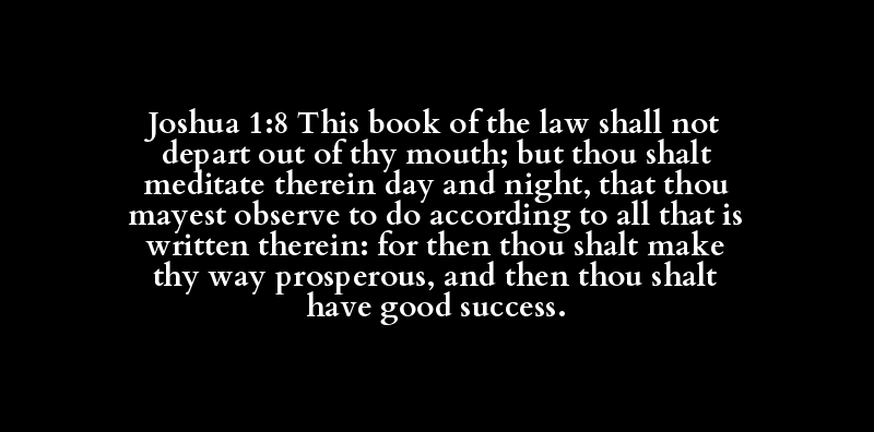 Joshua 1:8 This book of the law shall not depart out of thy mouth; but thou shalt meditate therein day and night, that thou mayest observe to do according to all that is written therein: for then thou shalt make thy way prosperous, and then thou shalt have good success.
