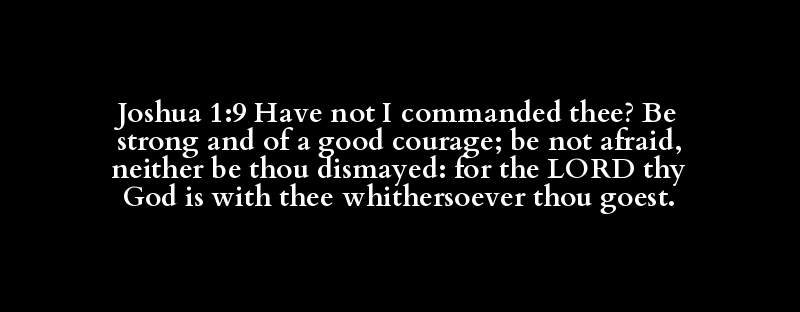 Joshua 1:9 Have not I commanded thee? Be strong and of a good courage; be not afraid, neither be thou dismayed: for the LORD thy God is with thee whithersoever thou goest.