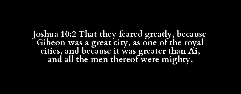 Joshua 10:2 That they feared greatly, because Gibeon was a great city, as one of the royal cities, and because it was greater than Ai, and all the men thereof were mighty.