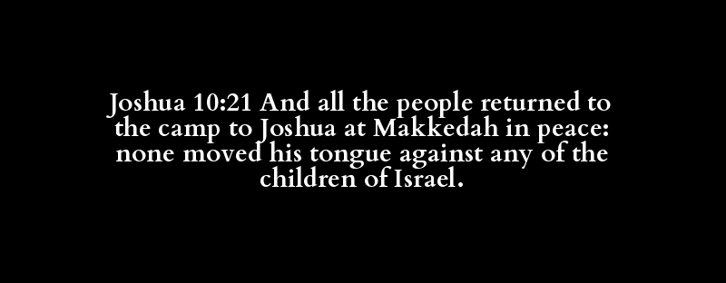 Joshua 10:21 And all the people returned to the camp to Joshua at Makkedah in peace: none moved his tongue against any of the children of Israel.