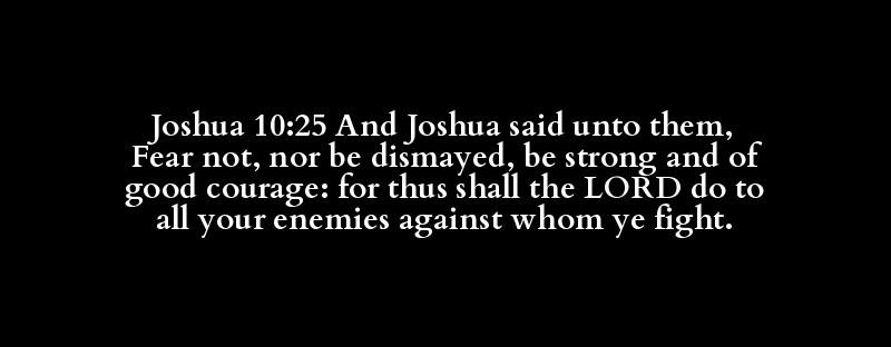 Joshua 10:25 And Joshua said unto them, Fear not, nor be dismayed, be strong and of good courage: for thus shall the LORD do to all your enemies against whom ye fight.