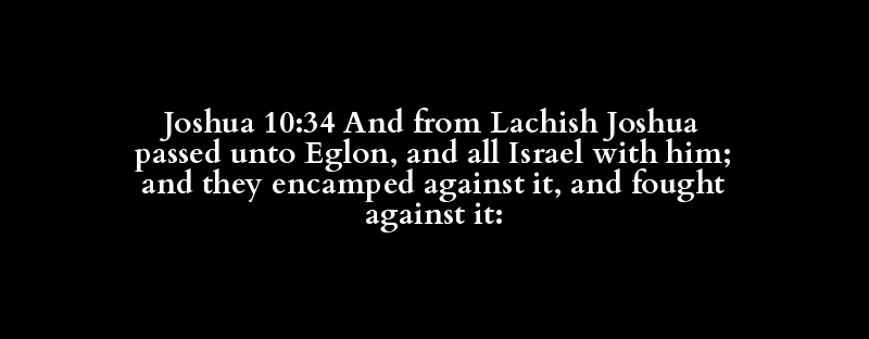 Joshua 10:34 And from Lachish Joshua passed unto Eglon, and all Israel with him; and they encamped against it, and fought against it:
