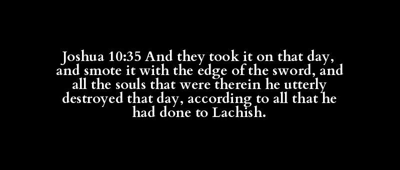 Joshua 10:35 And they took it on that day, and smote it with the edge of the sword, and all the souls that were therein he utterly destroyed that day, according to all that he had done to Lachish.
