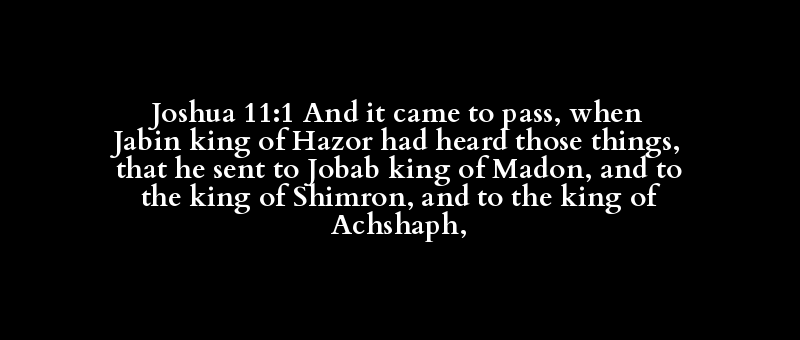 Joshua 11:1 And it came to pass, when Jabin king of Hazor had heard those things, that he sent to Jobab king of Madon, and to the king of Shimron, and to the king of Achshaph,