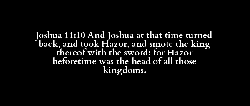 Joshua 11:10 And Joshua at that time turned back, and took Hazor, and smote the king thereof with the sword: for Hazor beforetime was the head of all those kingdoms.