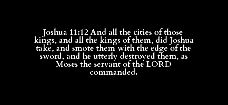 Joshua 11:12 And all the cities of those kings, and all the kings of them, did Joshua take, and smote them with the edge of the sword, and he utterly destroyed them, as Moses the servant of the LORD commanded.
