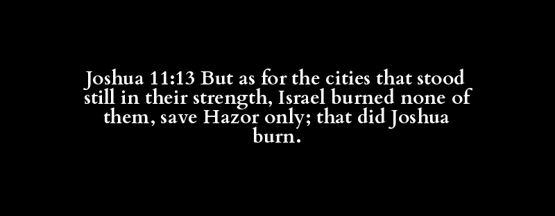 Joshua 11:13 But as for the cities that stood still in their strength, Israel burned none of them, save Hazor only; that did Joshua burn.