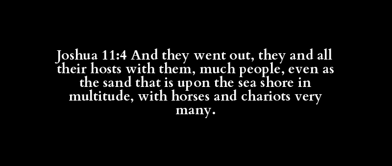 Joshua 11:4 And they went out, they and all their hosts with them, much people, even as the sand that is upon the sea shore in multitude, with horses and chariots very many.