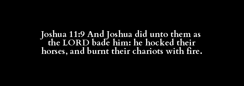 Joshua 11:9 And Joshua did unto them as the LORD bade him: he hocked their horses, and burnt their chariots with fire.