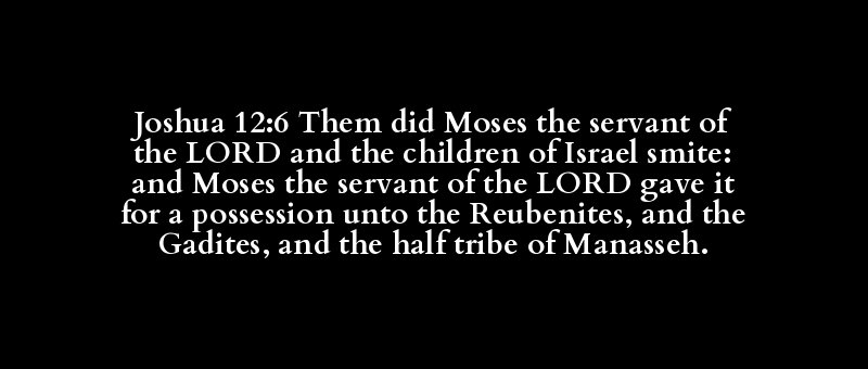 Joshua 12:6 Them did Moses the servant of the LORD and the children of Israel smite: and Moses the servant of the LORD gave it for a possession unto the Reubenites, and the Gadites, and the half tribe of Manasseh.