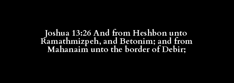 Joshua 13:26 And from Heshbon unto Ramathmizpeh, and Betonim; and from Mahanaim unto the border of Debir;