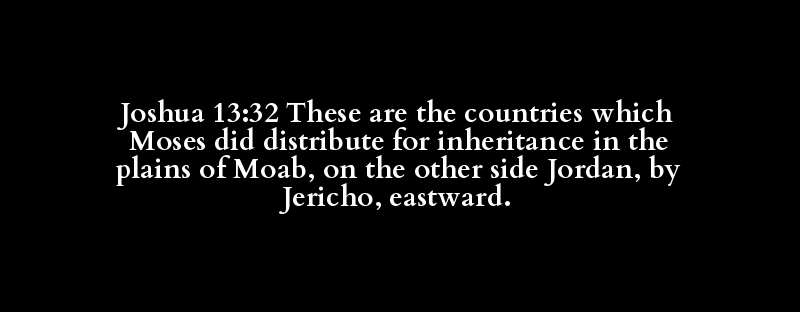 Joshua 13:32 These are the countries which Moses did distribute for inheritance in the plains of Moab, on the other side Jordan, by Jericho, eastward.