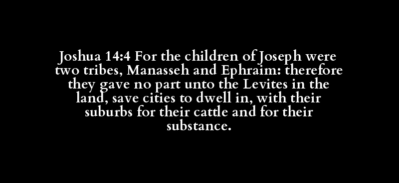 Joshua 14:4 For the children of Joseph were two tribes, Manasseh and Ephraim: therefore they gave no part unto the Levites in the land, save cities to dwell in, with their suburbs for their cattle and for their substance.