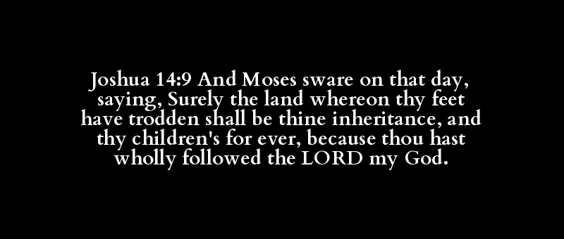 Joshua 14:9 And Moses sware on that day, saying, Surely the land whereon thy feet have trodden shall be thine inheritance, and thy children's for ever, because thou hast wholly followed the LORD my God.