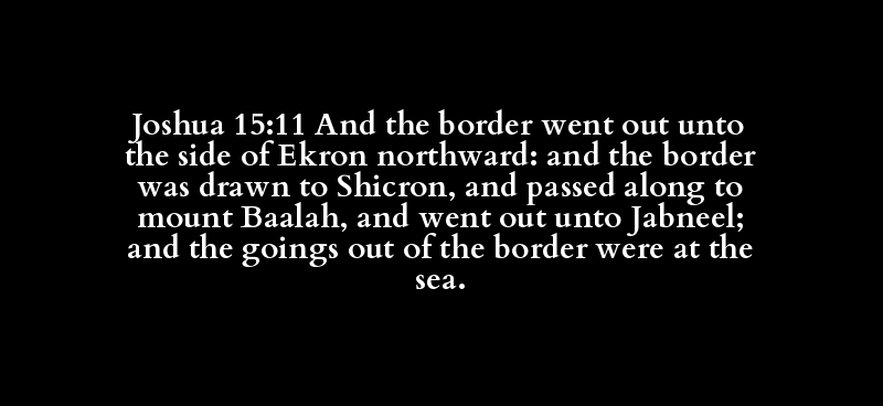 Joshua 15:11 And the border went out unto the side of Ekron northward: and the border was drawn to Shicron, and passed along to mount Baalah, and went out unto Jabneel; and the goings out of the border were at the sea.
