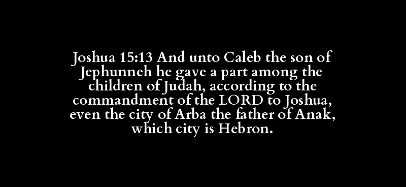 Joshua 15:13 And unto Caleb the son of Jephunneh he gave a part among the children of Judah, according to the commandment of the LORD to Joshua, even the city of Arba the father of Anak, which city is Hebron.