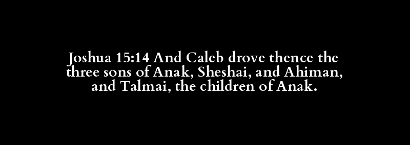 Joshua 15:14 And Caleb drove thence the three sons of Anak, Sheshai, and Ahiman, and Talmai, the children of Anak.