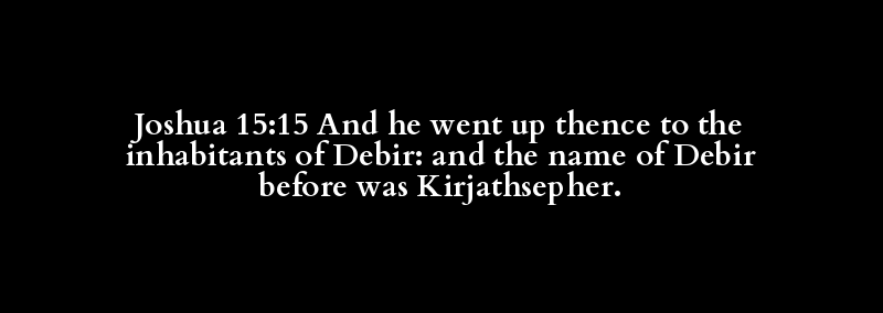 Joshua 15:15 And he went up thence to the inhabitants of Debir: and the name of Debir before was Kirjathsepher.