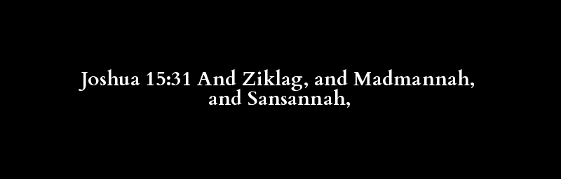 Joshua15:31 From Original Authorized King James VersionJoshua 15:31 And Ziklag, and Madmannah, and Sansannah,