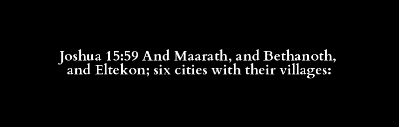 Joshua 15:59 And Maarath, and Bethanoth, and Eltekon; six cities with their villages: