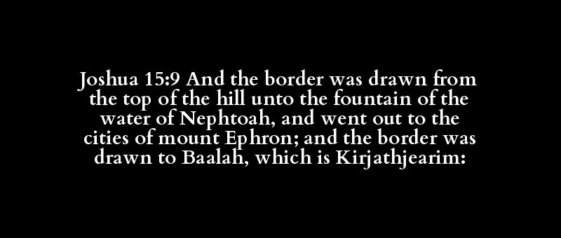 Joshua 15:9 And the border was drawn from the top of the hill unto the fountain of the water of Nephtoah, and went out to the cities of mount Ephron; and the border was drawn to Baalah, which is Kirjathjearim: